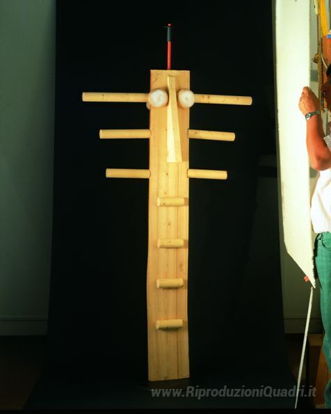 Ti offriamo una riproduzione artigianale su tela dell'opera famosa 'Lancillotto e re Arta' di Enrico Baj, dal Museo delle Riproduzioni.