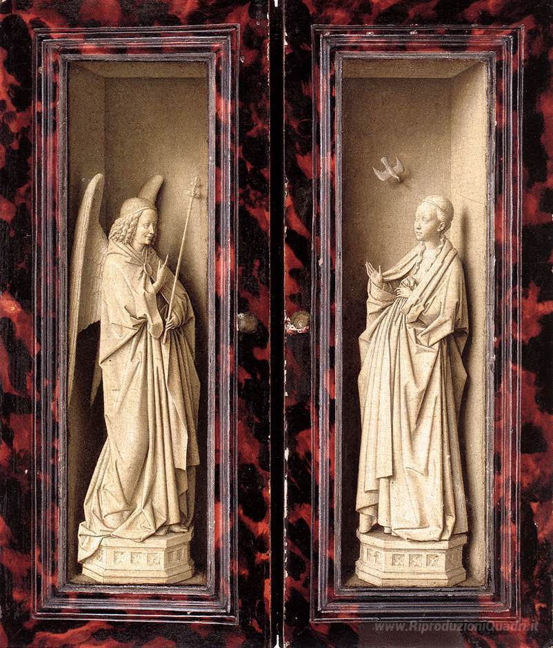 Ti offriamo una riproduzione artigianale su tela dell'opera famosa 'L'Annunciazione' di Jan van Eyck, dal Museo delle Riproduzioni.
