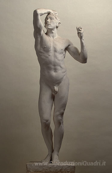 Ti offriamo una riproduzione artigianale su tela dell'opera famosa 'L'Età del Bronzo' di Auguste Rodin, dal Museo delle Riproduzioni.