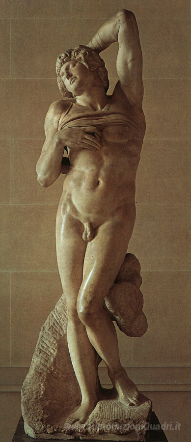 Ti offriamo una riproduzione artigianale su tela dell'opera famosa 'Lo schiavo morente' di Michelangelo, dal Museo delle Riproduzioni.