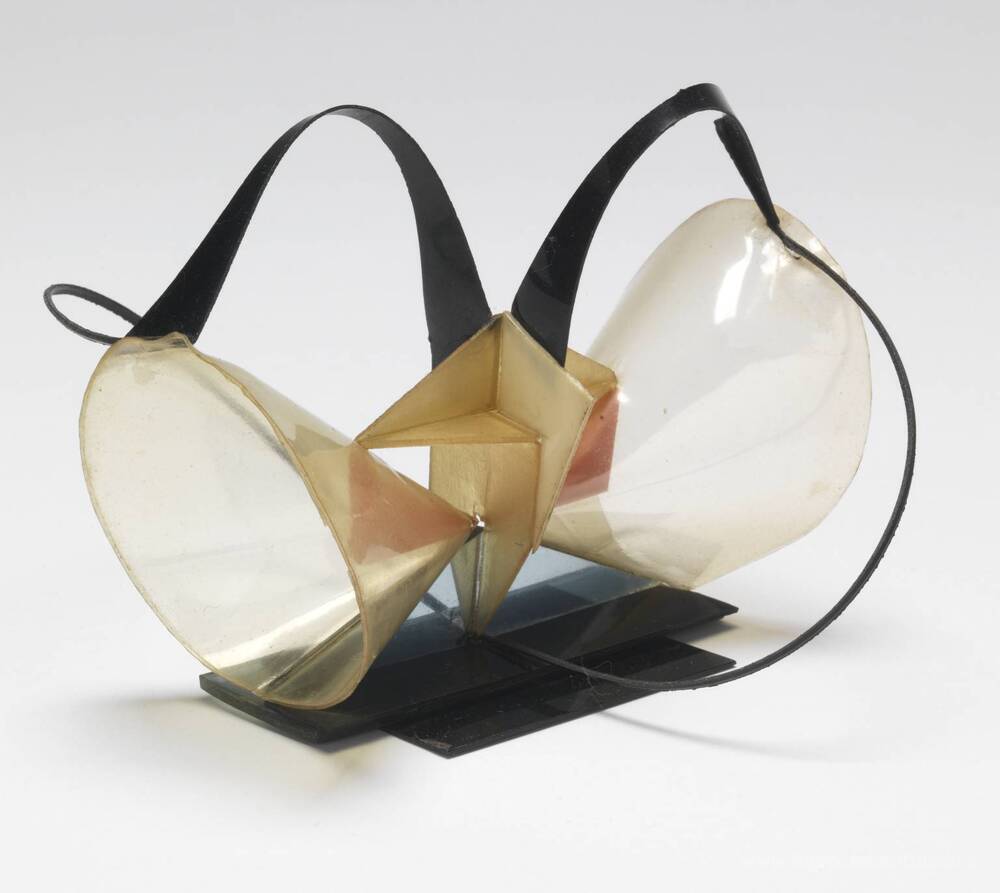 Ti offriamo una riproduzione artigianale su tela dell'opera famosa 'Modello di 'Artigianato in Space' Due Coni ''' di Naum Gabo, dal Museo delle Riproduzioni.