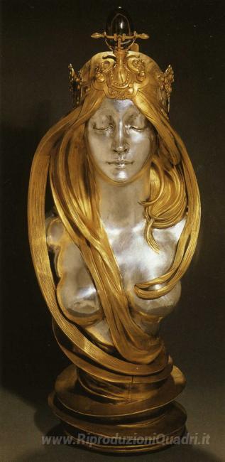 Ti offriamo una riproduzione artigianale su tela dell'opera famosa 'Natura' di Alphonse Mucha, dal Museo delle Riproduzioni.