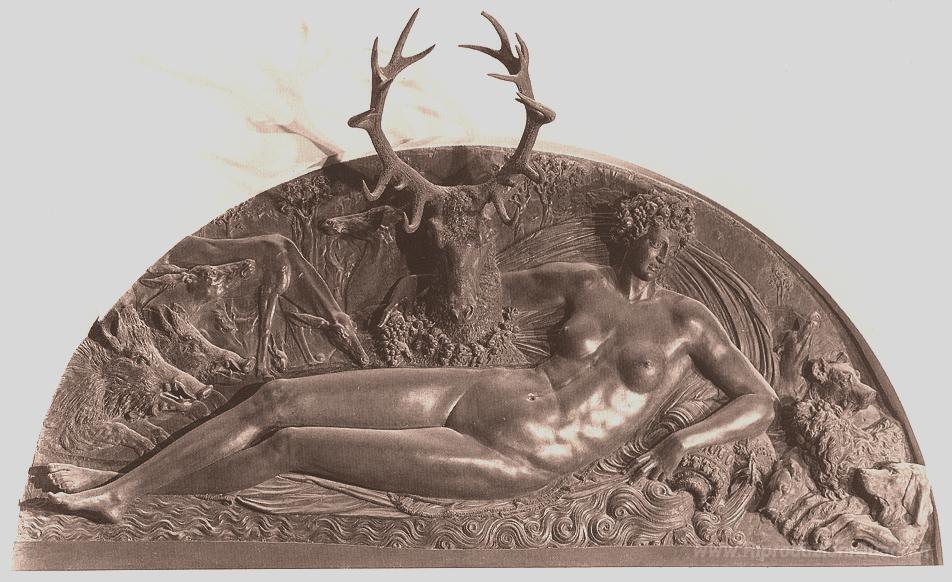 Ti offriamo una riproduzione artigianale su tela dell'opera famosa 'Ninfa di Fontainebleau' di Benvenuto Cellini, dal Museo delle Riproduzioni.
