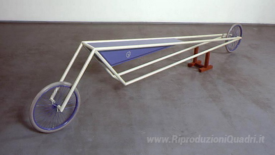 Ti offriamo una riproduzione artigianale su tela dell'opera famosa 'Pearl Veicolo Telaio con Viola-blu Triangolo serbatoio' di Gianni Piacentino, dal Museo delle Riproduzioni.