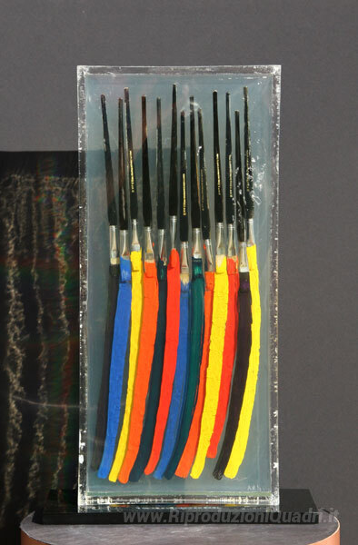 Ti offriamo una riproduzione artigianale su tela dell'opera famosa 'Pennelli V' di Arman, dal Museo delle Riproduzioni.