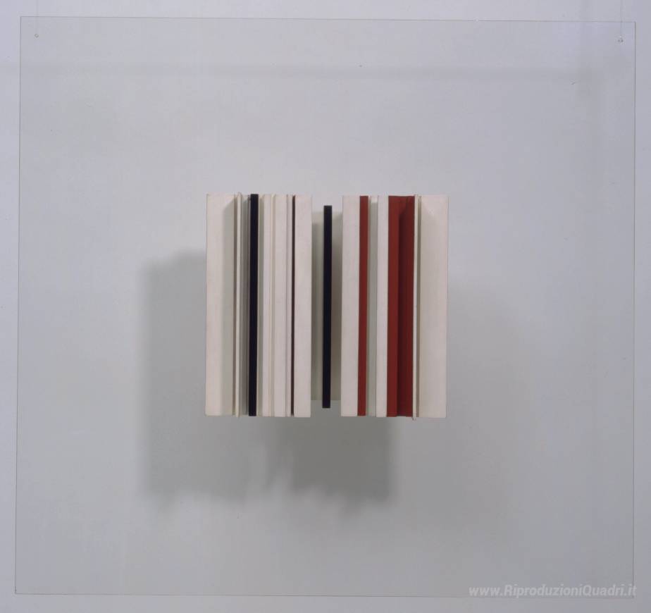 Ti offriamo una riproduzione artigianale su tela dell'opera famosa 'Rilievo di costruzione in bianco, nero e marrone rossiccio' di Victor Pasmore, dal Museo delle Riproduzioni.