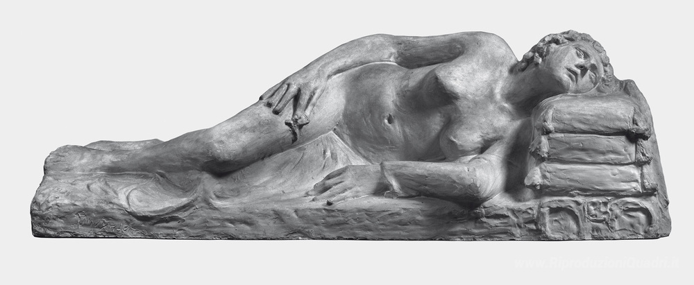Ti offriamo una riproduzione artigianale su tela dell'opera famosa 'Riposo' di Yannoulis Chalepas, dal Museo delle Riproduzioni.