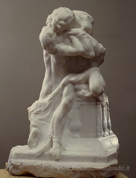 Ti offriamo una riproduzione artigianale su tela dell'opera famosa 'Romeo e Giulietta' di Auguste Rodin, dal Museo delle Riproduzioni.
