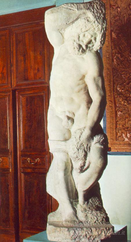 Ti offriamo una riproduzione artigianale su tela dell'opera famosa 'Schiavo barbuto' di Michelangelo, dal Museo delle Riproduzioni.