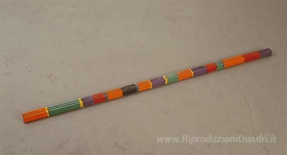 Ti offriamo una riproduzione artigianale su tela dell'opera famosa 'Square Bar in legno' di Andre Cadere, dal Museo delle Riproduzioni.