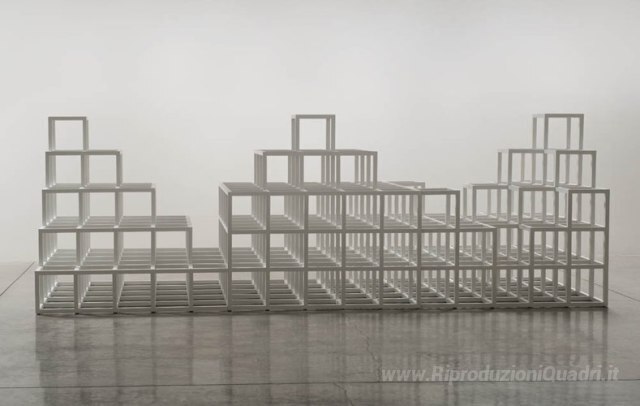 Ti offriamo una riproduzione artigianale su tela dell'opera famosa 'Struttura Tre Torri' di Sol LeWitt, dal Museo delle Riproduzioni.