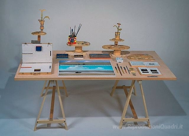 Ti offriamo una riproduzione artigianale su tela dell'opera famosa 'Tabella Estate' di Saul Steinberg, dal Museo delle Riproduzioni.