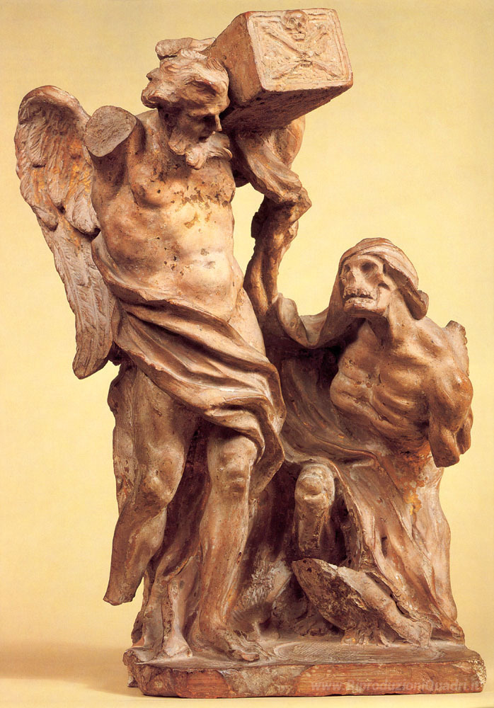 Ti offriamo una riproduzione artigianale su tela dell'opera famosa 'Tempo Arrestato dalla morte' di Gian Lorenzo Bernini, dal Museo delle Riproduzioni.