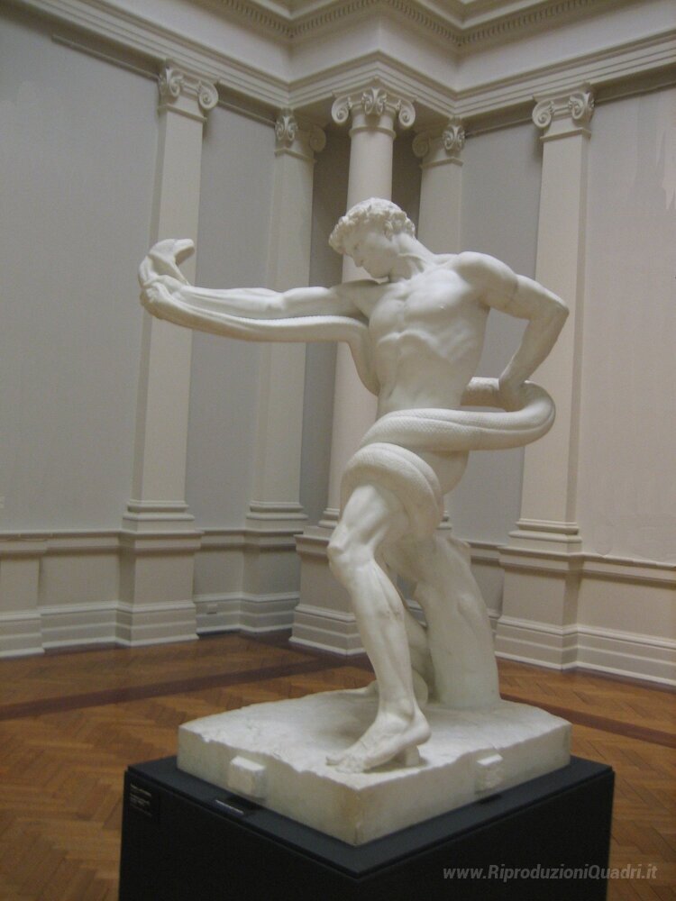 Ti offriamo una riproduzione artigianale su tela dell'opera famosa 'Un atleta alle prese con un pitone' di Frederic Leighton, dal Museo delle Riproduzioni.
