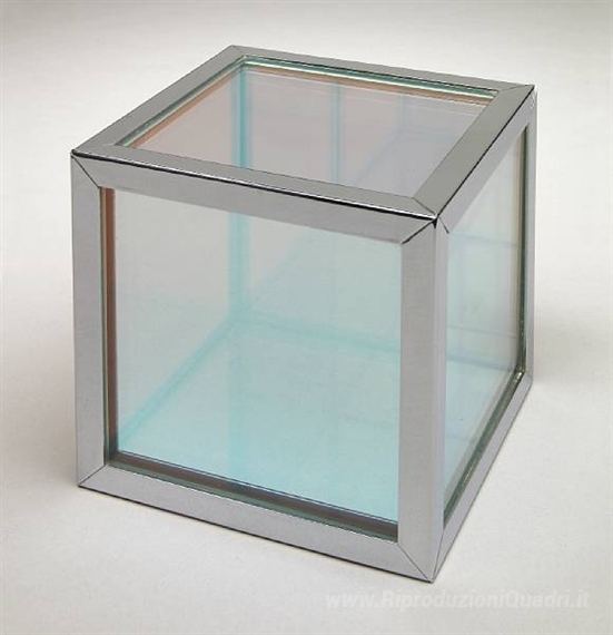 Ti offriamo una riproduzione artigianale su tela dell'opera famosa 'Untitled (iridescente Cube)' di Larry Bell, dal Museo delle Riproduzioni.