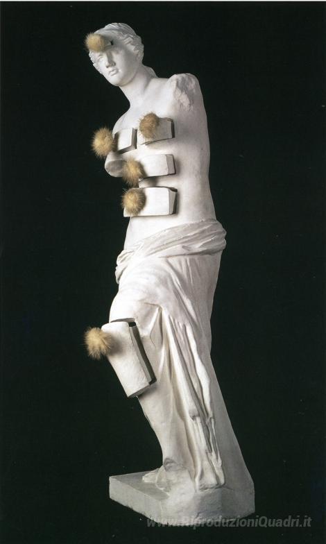 Ti offriamo una riproduzione artigianale su tela dell'opera famosa 'Venere di Milo con cassetti' di Salvador Dali, dal Museo delle Riproduzioni.