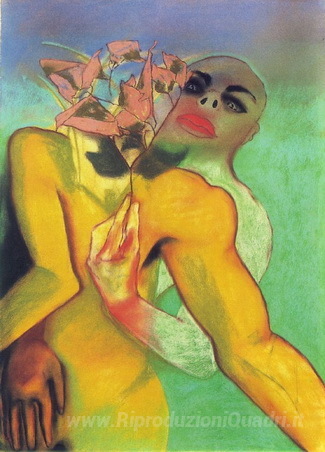 Ti offriamo una riproduzione artigianale su tela dell'opera famosa 'Abbraccio' di Francesco Clemente, dal Museo delle Riproduzioni.
