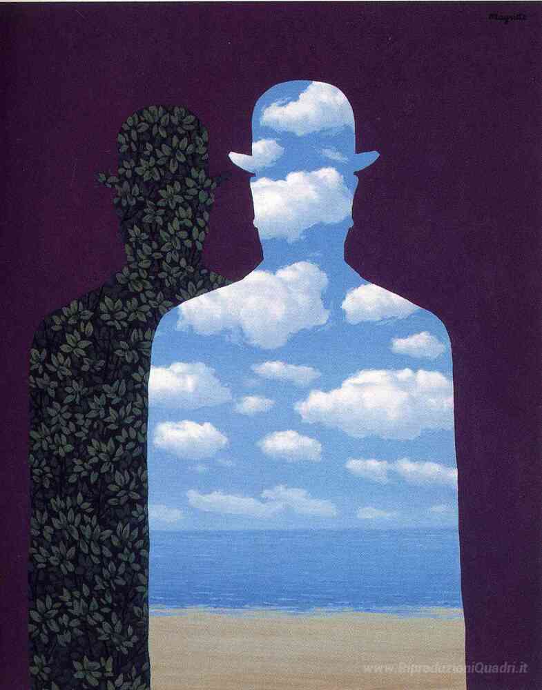 Ti offriamo una riproduzione artigianale su tela dell'opera famosa 'Alta società' di Rene Magritte, dal Museo delle Riproduzioni.