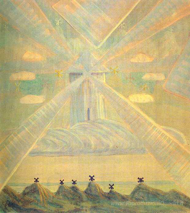 Ti offriamo una riproduzione artigianale su tela dell'opera famosa 'Andante (Sonata della primavera)' di Mikalojus Ciurlionis, dal Museo delle Riproduzioni.