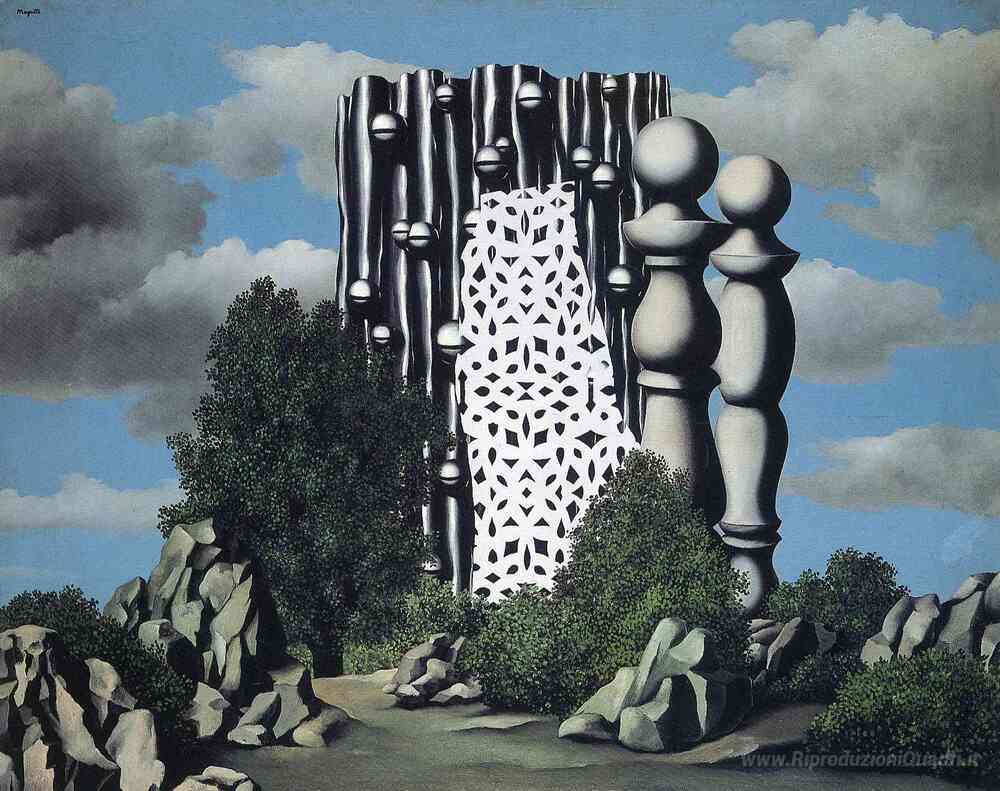 Ti offriamo una riproduzione artigianale su tela dell'opera famosa 'Annunciazione' di Rene Magritte, dal Museo delle Riproduzioni.
