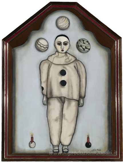 Ti offriamo una riproduzione artigianale su tela dell'opera famosa 'Arlequín' di Julio Galan, dal Museo delle Riproduzioni.