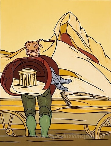 Ti offriamo una riproduzione artigianale su tela dell'opera famosa 'Ascensione' di Valerio Adami, dal Museo delle Riproduzioni.