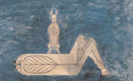 Ti offriamo una riproduzione artigianale su tela dell'opera famosa 'Asse del mondo con la lepre' di August Natterer, dal Museo delle Riproduzioni.