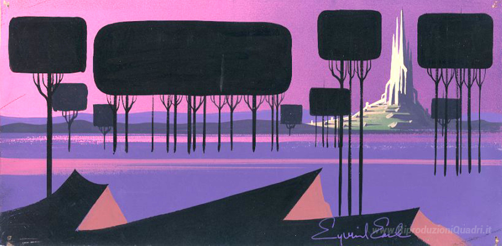 Ti offriamo una riproduzione artigianale su tela dell'opera famosa 'Bella addormentata' di Eyvind Earle, dal Museo delle Riproduzioni.
