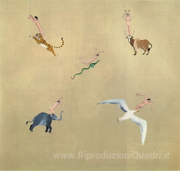 Ti offriamo una riproduzione artigianale su tela dell'opera famosa 'Bestiario' di Francesco Clemente, dal Museo delle Riproduzioni.