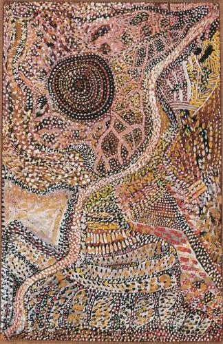 Scopri l'affascinante mondo dell'arte italiana con un'opera straordinaria: Bush Tucker Sognando con acqua corrente dell'artista Johnny Warangkula Tjupurrula. Questo dipinto a olio è una celebrazione della cultura e della tradizione aborigena, che si esprime attraverso una combinazione di colori vibranti e forme evocative. Warangkula Tjupurrula, noto per la sua profonda connessione con il paesaggio australiano, utilizza tecniche pittoriche raffinati per trasmettere l'essenza dei suoi soggetti, permettendo allo spettatore di immergersi in atmosfere suggestive e contemplative.