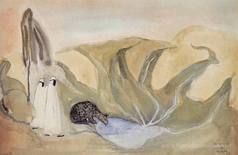 Ti offriamo una riproduzione artigianale su tela dell'opera famosa 'Con l'acqua' di Martiros Saryan, dal Museo delle Riproduzioni.
