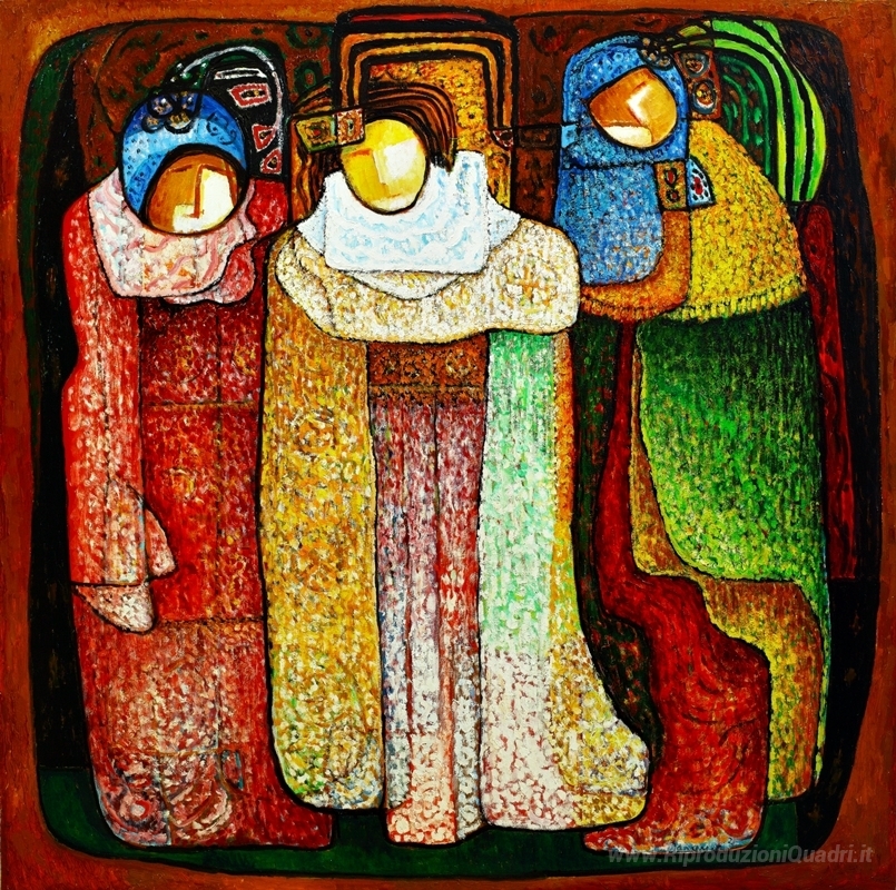 Ti offriamo una riproduzione artigianale su tela dell'opera famosa 'Consiglio Magi's' di George Stefanescu-Ramnic , dal Museo delle Riproduzioni.