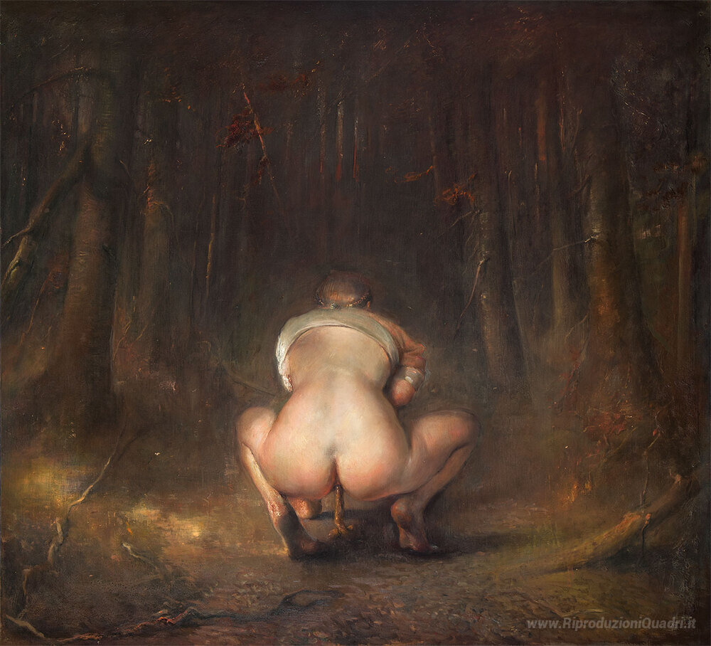 Ti offriamo una riproduzione artigianale su tela dell'opera famosa 'crepuscolo' di Odd Nerdrum, dal Museo delle Riproduzioni.