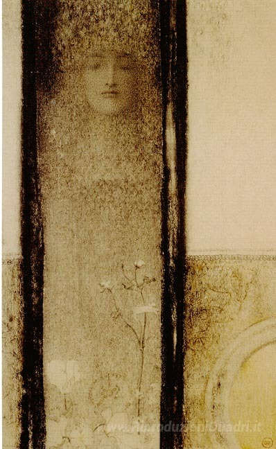 Ti offriamo una riproduzione artigianale su tela dell'opera famosa 'Donna di mistero' di Fernand Khnopff, dal Museo delle Riproduzioni.