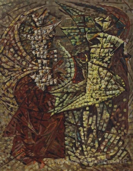 Ti offriamo una riproduzione artigianale su tela dell'opera famosa 'Dos personajes' di Gunther Gerzso, dal Museo delle Riproduzioni.