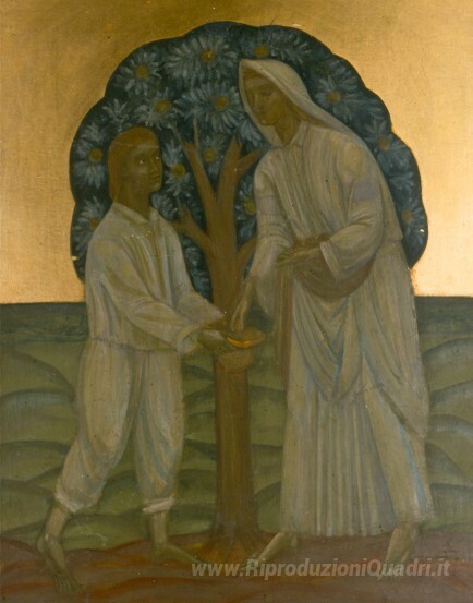 Ti offriamo una riproduzione artigianale su tela dell'opera famosa 'Due sotto un albero' di Mykhailo Boichuk, dal Museo delle Riproduzioni.