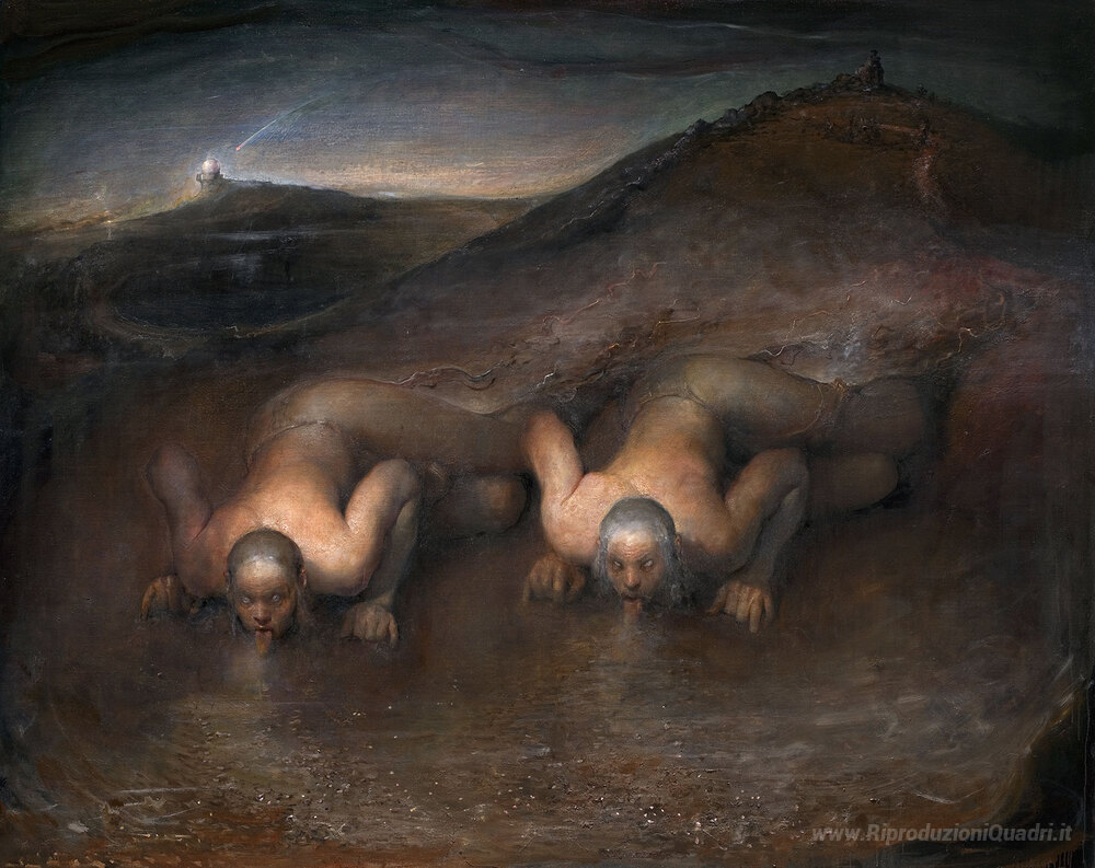 Ti offriamo una riproduzione artigianale su tela dell'opera famosa 'Dustlickers' di Odd Nerdrum, dal Museo delle Riproduzioni.