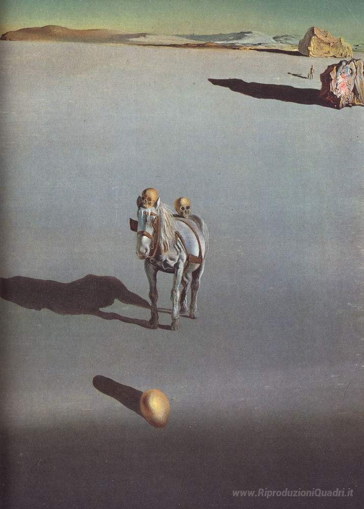 Ti offriamo una riproduzione artigianale su tela dell'opera famosa 'Evoluzione geologica' di Salvador Dali, dal Museo delle Riproduzioni.