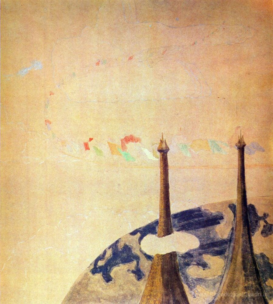 Ti offriamo una riproduzione artigianale su tela dell'opera famosa 'Finale (Sonata della primavera)' di Mikalojus Ciurlionis, dal Museo delle Riproduzioni.