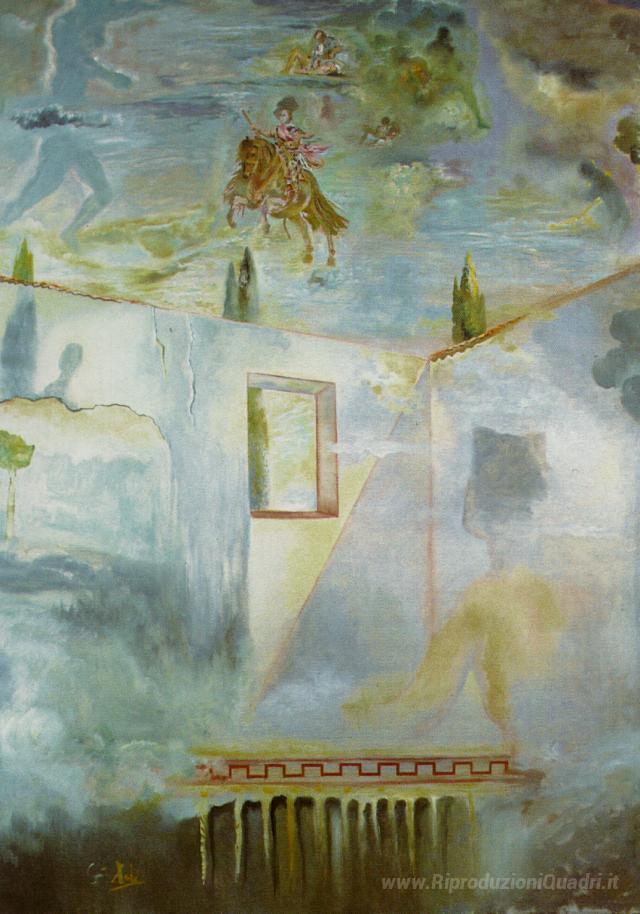 Ti offriamo una riproduzione artigianale su tela dell'opera famosa 'Gala in un patio Watching The Sky, dove la figura equestre del p' di Salvador Dali, dal Museo delle Riproduzioni.