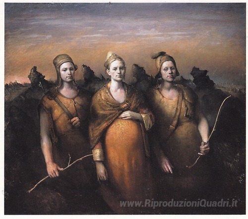 Ti offriamo una riproduzione artigianale su tela dell'opera famosa 'Gemelle Madri' di Odd Nerdrum, dal Museo delle Riproduzioni.