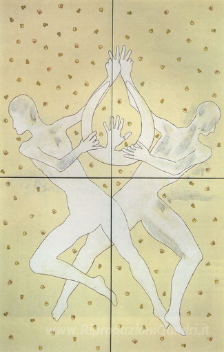 Ti offriamo una riproduzione artigianale su tela dell'opera famosa 'Gemelli' di Francesco Clemente, dal Museo delle Riproduzioni.