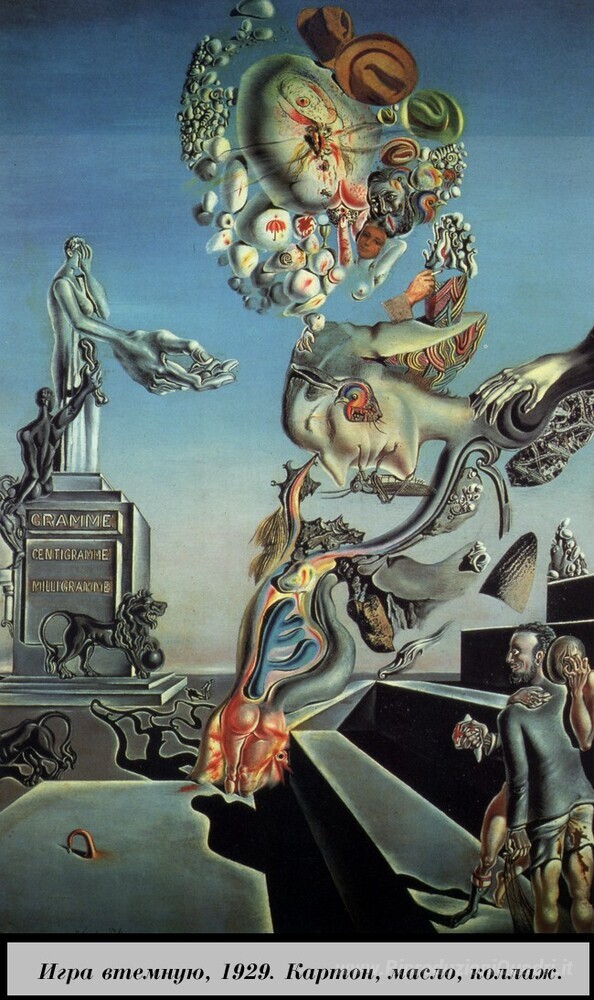 Ti offriamo una riproduzione artigianale su tela dell'opera famosa 'Giocare in the Dark' di Salvador Dali, dal Museo delle Riproduzioni.