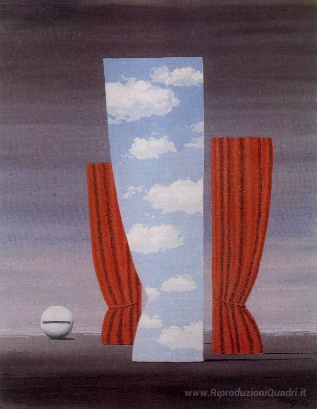 Ti offriamo una riproduzione artigianale su tela dell'opera famosa 'Gioconda' di Rene Magritte, dal Museo delle Riproduzioni.