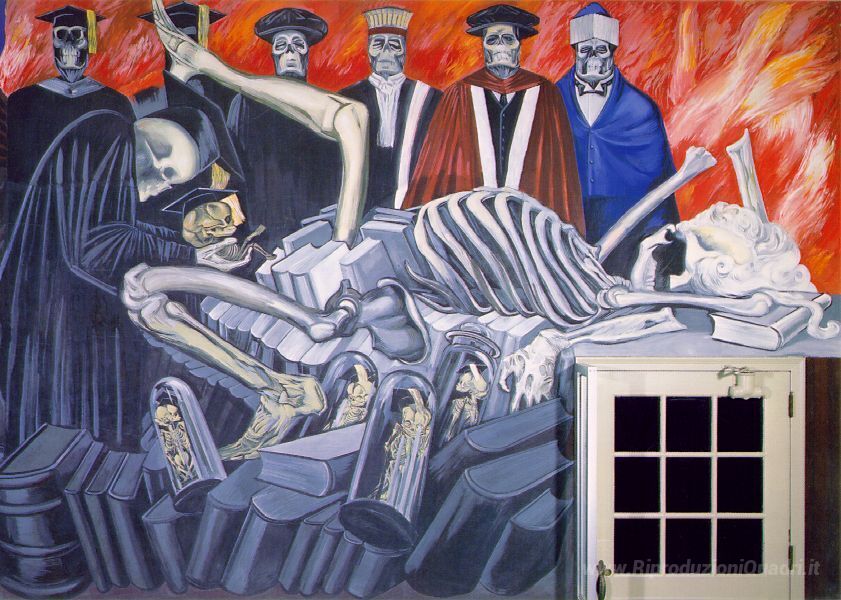 Ti offriamo una riproduzione artigianale su tela dell'opera famosa 'Gli dei del mondo moderno - l'epopea della civiltà americana' di Jose Clemente Orozco, dal Museo delle Riproduzioni.