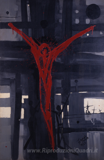 Ti offriamo una riproduzione artigianale su tela dell'opera famosa 'Gologotha' di Gebre Kristos Desta, dal Museo delle Riproduzioni.