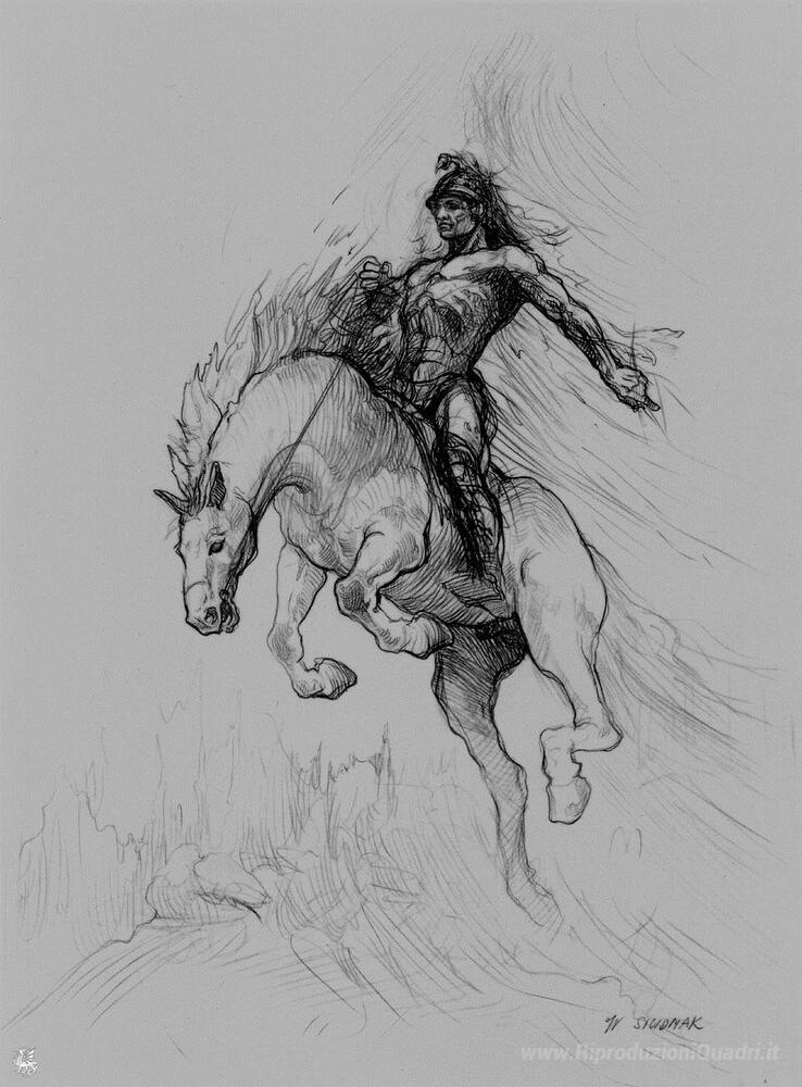 Ti offriamo una riproduzione artigianale su tela dell'opera famosa 'Guerriero' di Wojciech Siudmak, dal Museo delle Riproduzioni.