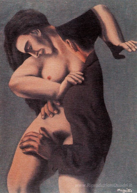 Ti offriamo una riproduzione artigianale su tela dell'opera famosa 'I giorni Titanic' di Rene Magritte, dal Museo delle Riproduzioni.