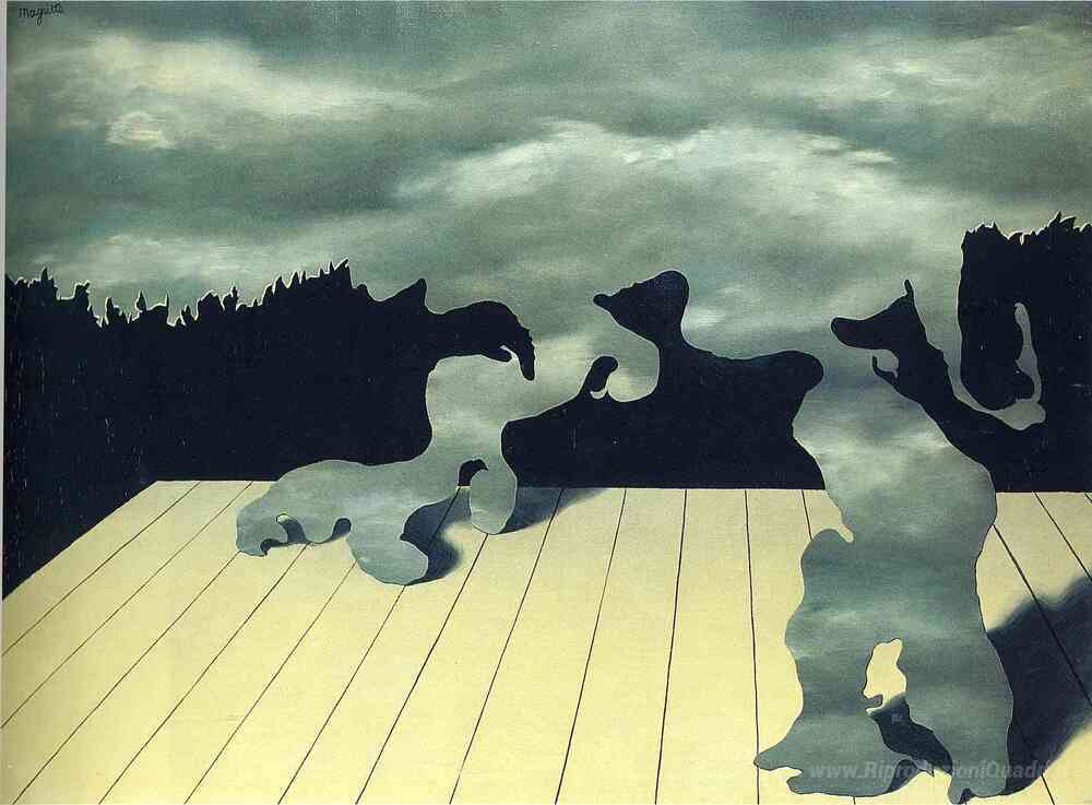 Ti offriamo una riproduzione artigianale su tela dell'opera famosa 'I muscoli del cielo' di Rene Magritte, dal Museo delle Riproduzioni.