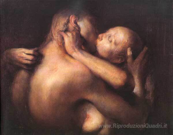Ti offriamo una riproduzione artigianale su tela dell'opera famosa 'Il bacio' di Odd Nerdrum, dal Museo delle Riproduzioni.